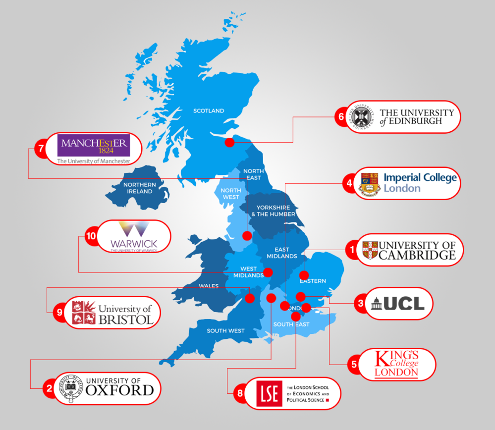 Here is the list of 10 highest-ranked universities in the U.K.:-